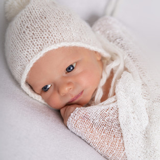 Nädalavanune modell oli oma beebisessioonist nii hämmingus, et jälgis meid oma suurte silmade ja terase pilguga kogu pildistamise aja, tukastades vaid mõneks hetkeks. Ju ta siis teadis, et avatud silmadega jäävad hoopis tõetruumad ja huvitavamad fotod. Mõned tudupildid saime siiski ka. Beebide pildistamine on nii ettearvamatu - iial ei tea, mis tujud ja tunded modellil sel päeval olla võivad.